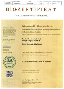Gute Nachrichten! Unser Unternehmen wurde offiziell von Grünstempel-Ökoprüfstelle e.V. nach derBio-Außer-Haus-Verpflegungsverordnung (Bio-AHVV) geprüft und zertifiziert.